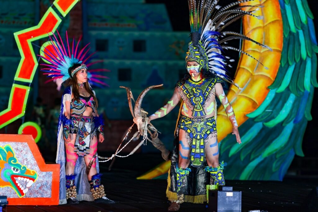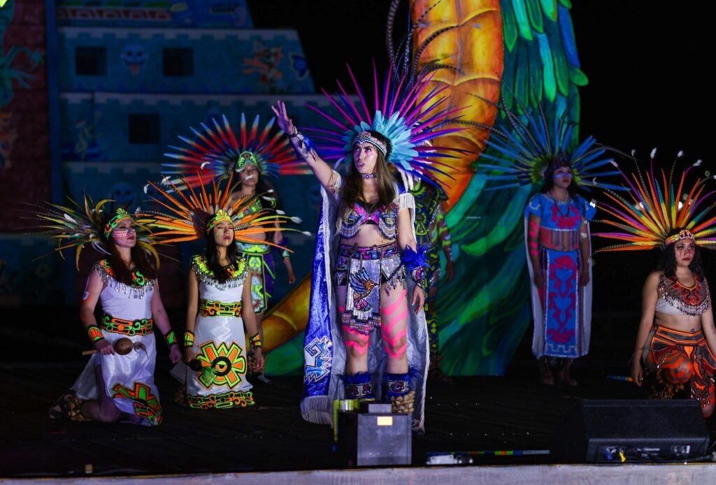 La puesta en escena destacó por su calidad y magnitud, contando con la participación de más de 45 danzantes, quienes ofrecieron un espectáculo lleno de simbolismo y riqueza cultural. Este importante montaje estuvo bajo la dirección del profesor Héctor Castilla, cuyo trabajo fue fundamental para lograr una presentación majestuosa, resaltando también por su destacada labor en la escenografía.