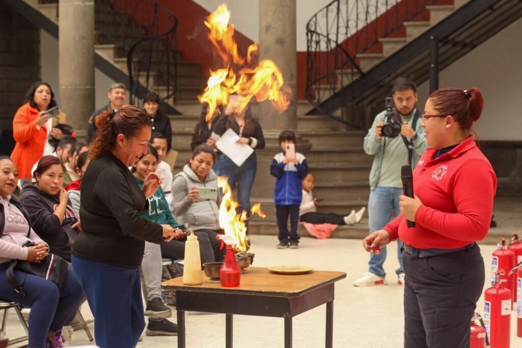 Con estas acciones, el Gobierno Municipal fortalece los conocimientos y habilidades de las madres de familia responsables de los comités escolares, en materia de prevención y atención de emergencias.