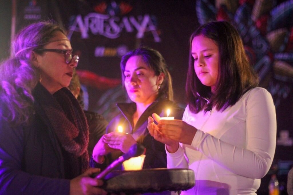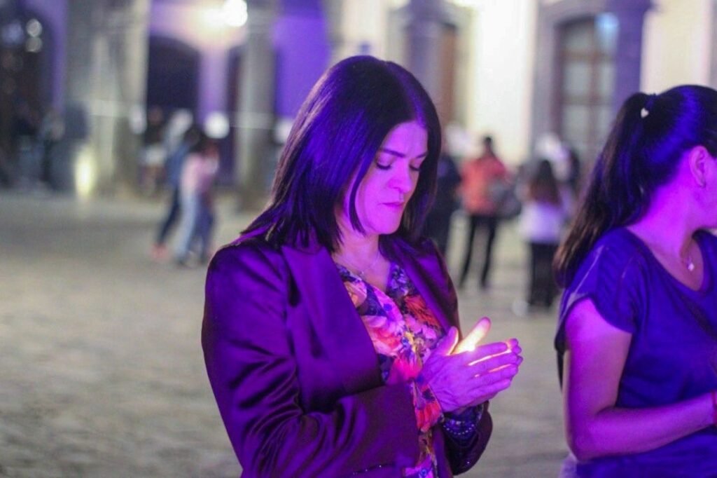 Después, las asistentes realizaron un ritual con velas, símbolo de valor, amor propio, solidaridad entre mujeres, respeto a la vida y anhelo de paz. Al ritmo de una canción dedicada al respeto hacia las mujeres, formaron un moño como exigencia de una vida libre de violencia.