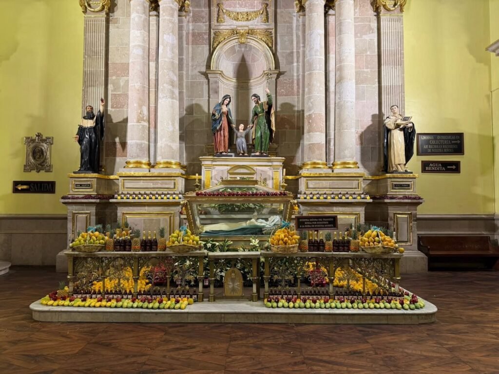 Como parte de su ofrenda, los zacatecos decoraron los altares con manzanas y productos elaborados en su tierra, como vinos artesanales, reforzando así el vínculo cultural y espiritual entre su municipio poblano y este importante santuario jalisciense.